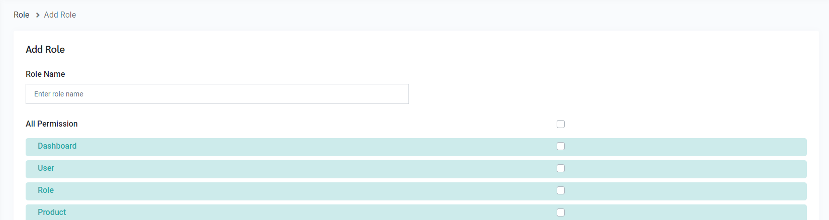 This screen is used to configure and manage the Roles which can be assigned to the Users.