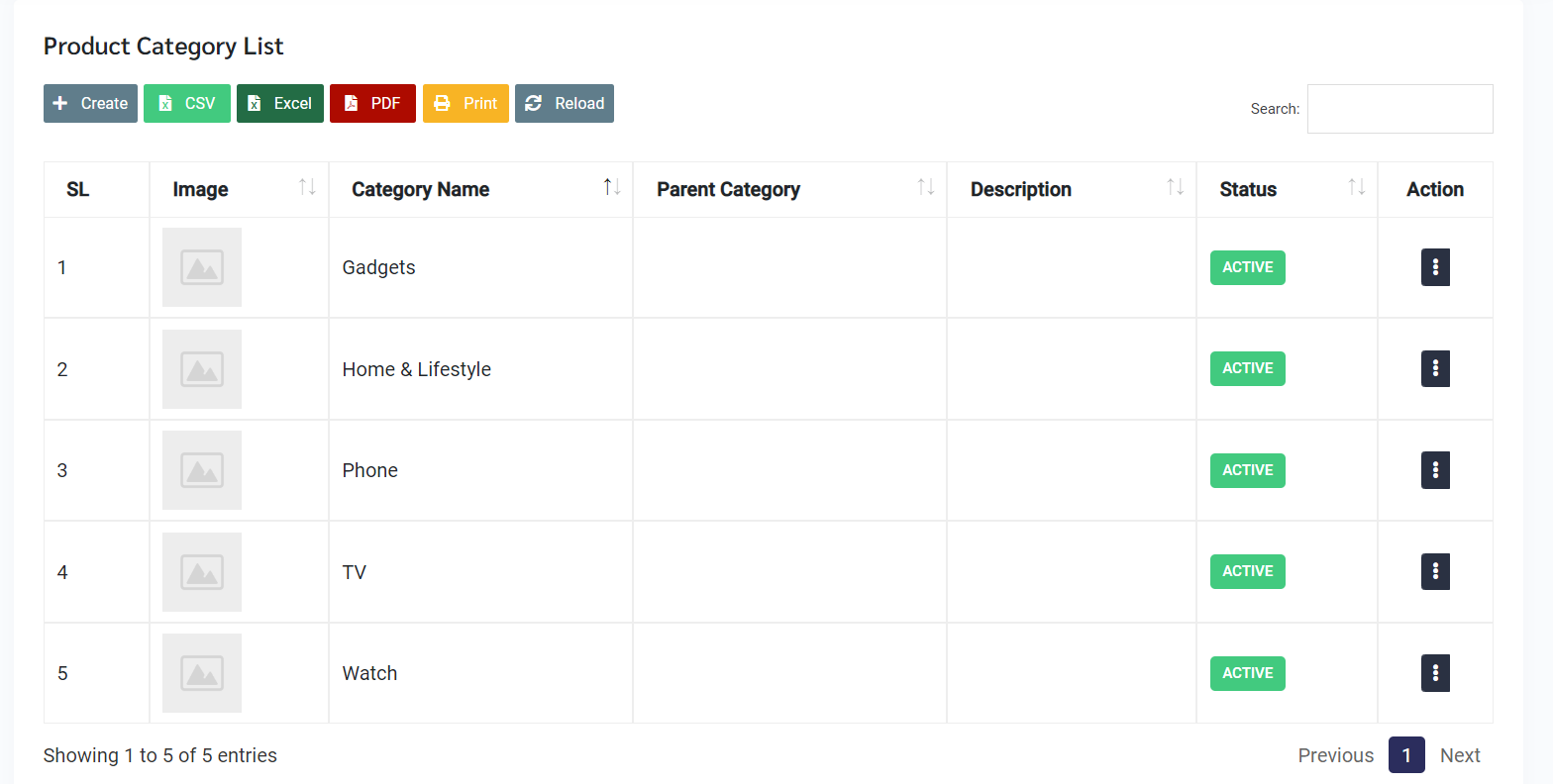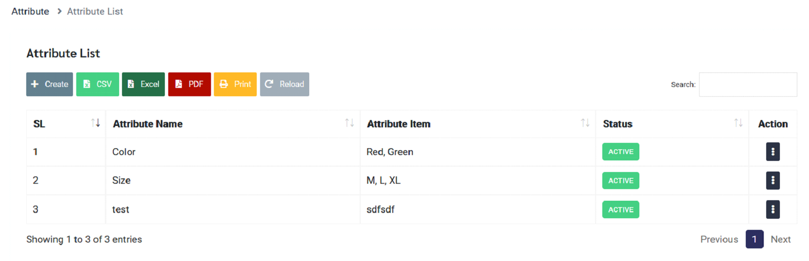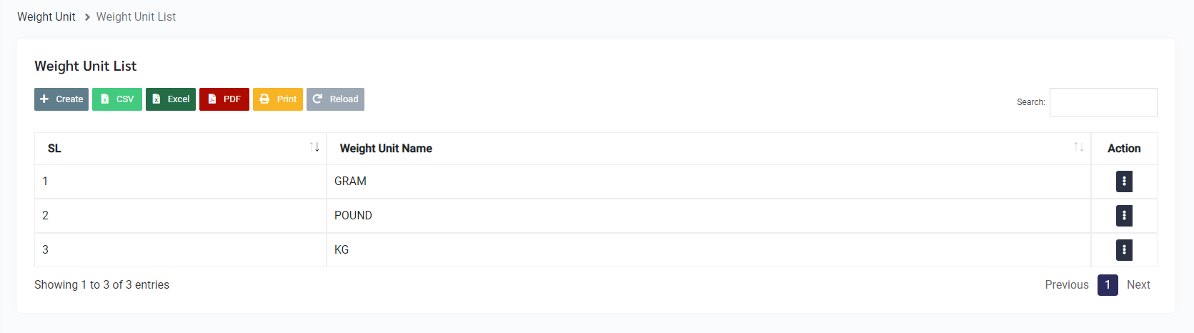 When clicked on this Sub-Module, you can see the User List. You can also create a new User, edit or delete any existing Users.
