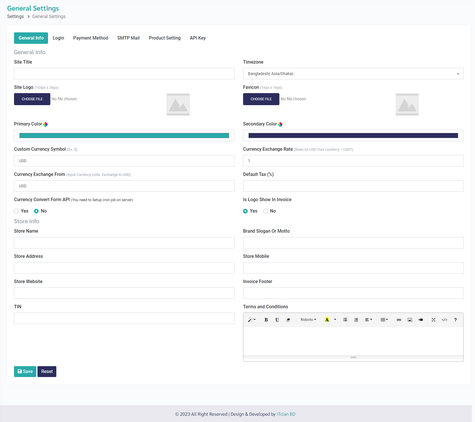 This Module allows the User to manage configuration settings including General Info, Payment Gateway and Email Notifications