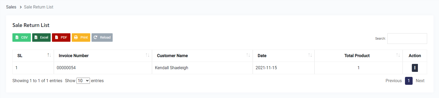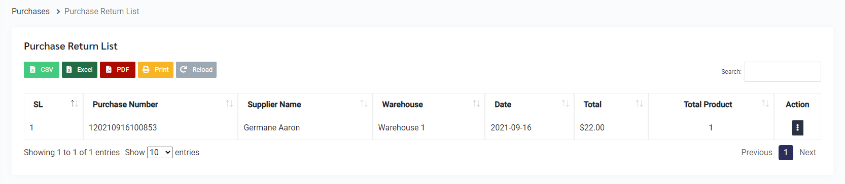 This sub-module allows the User to find information on the Returned Purchases created using the system.