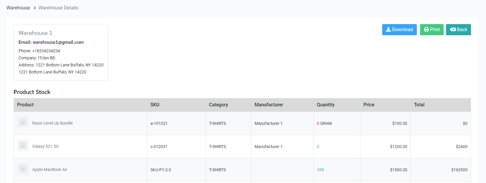You can download the complete Stock Information for multiple warehouses using this screen.